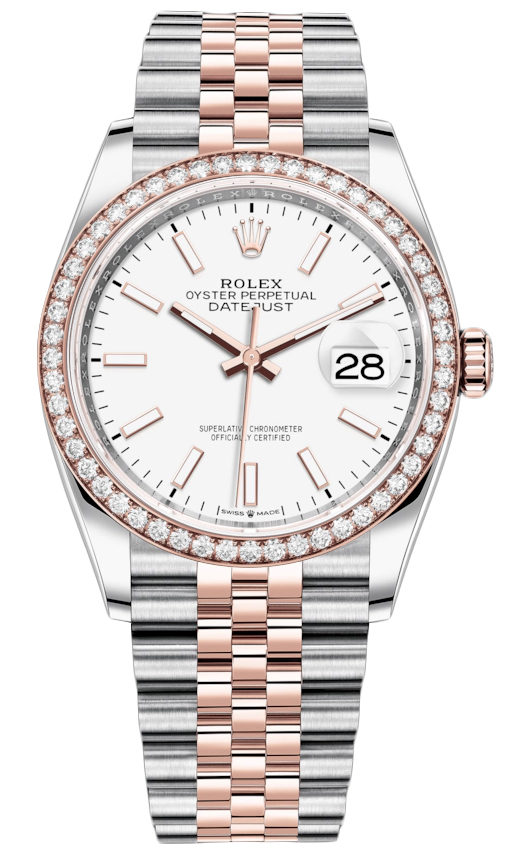 | MODEL CASE | Oyster, 36mm, Oystersteel, Everose gold and diamonds |
