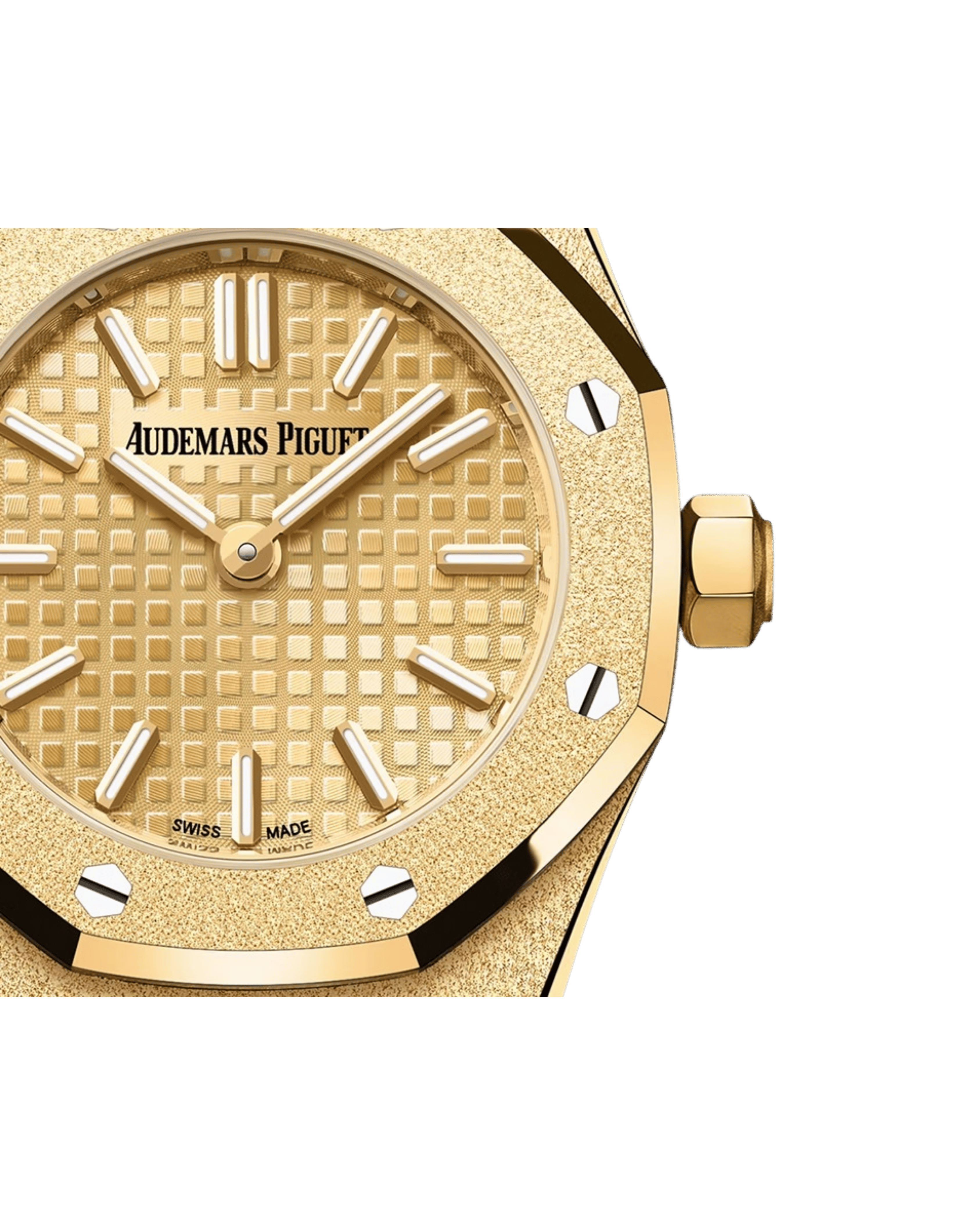 Audemars Piguet Royal Oak Mini Frosted Gold Quartz 67630BA.GG.1312BA.01 thuộc dòng Royal Oak biểu tượng – tinh hoa Gerald Genta dành riêng phái đẹp, nơi vàng Frosted lấp lánh như kim cương tuyết rơi hòa quyện họa tiết Tapisserie huyền thoại, khơi dậy vẻ thanh thoát nữ tính đầy mê hoặc giữa nhịp sống hiện đại.