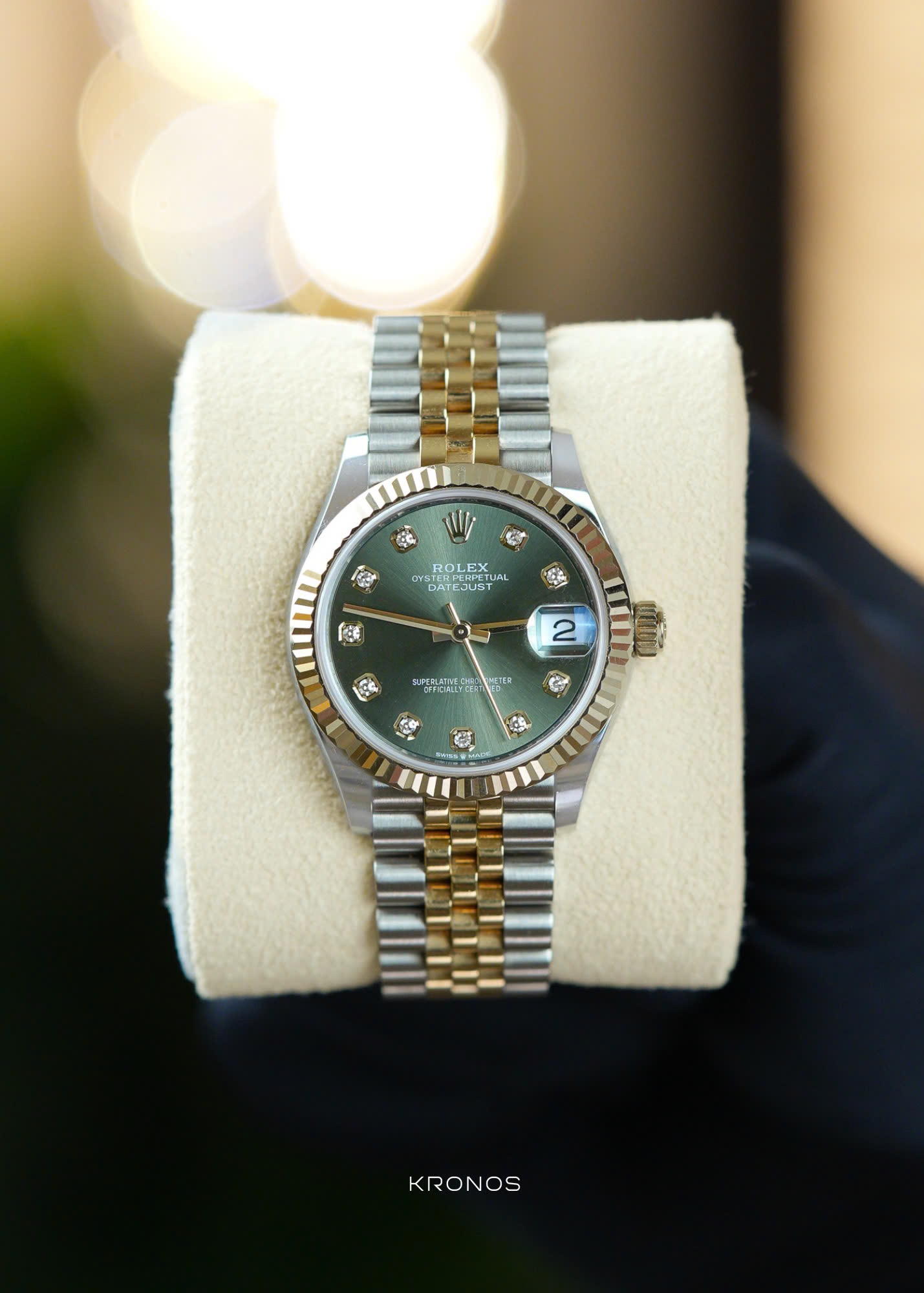Màu xanh ô liu trên chiếc Rolex Datejust 36mm 126233 là một lựa chọn độc đáo, mang đến vẻ đẹp thanh lịch và tinh tế vượt thời gian. Màu xanh này không quá sáng như màu xanh lá cây, cũng không quá tối như màu xanh lục, tạo nên một sự cân bằng hoàn hảo giữa sự tươi trẻ và sự trầm lắng. Màu xanh ô liu gợi nhớ đến những cánh rừng mùa thu vàng óng, mang đến một cảm giác ấm áp và gần gũi. Nó tạo nên một vẻ đẹp trường tồn với thời gian và phù hợp với mọi phong cách thời trang.